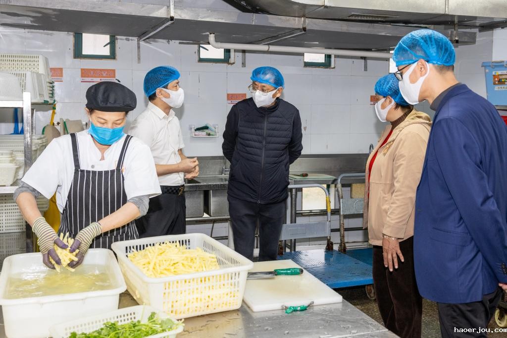 检查组一行重点查看了食品储存仓库、食堂后厨操作间、餐具消毒间、留样室、烹饪间等关键区域,对食材采购溯源、加工流程规范、从业人员健康管理、环境卫生消毒等情况进行了细致检查。