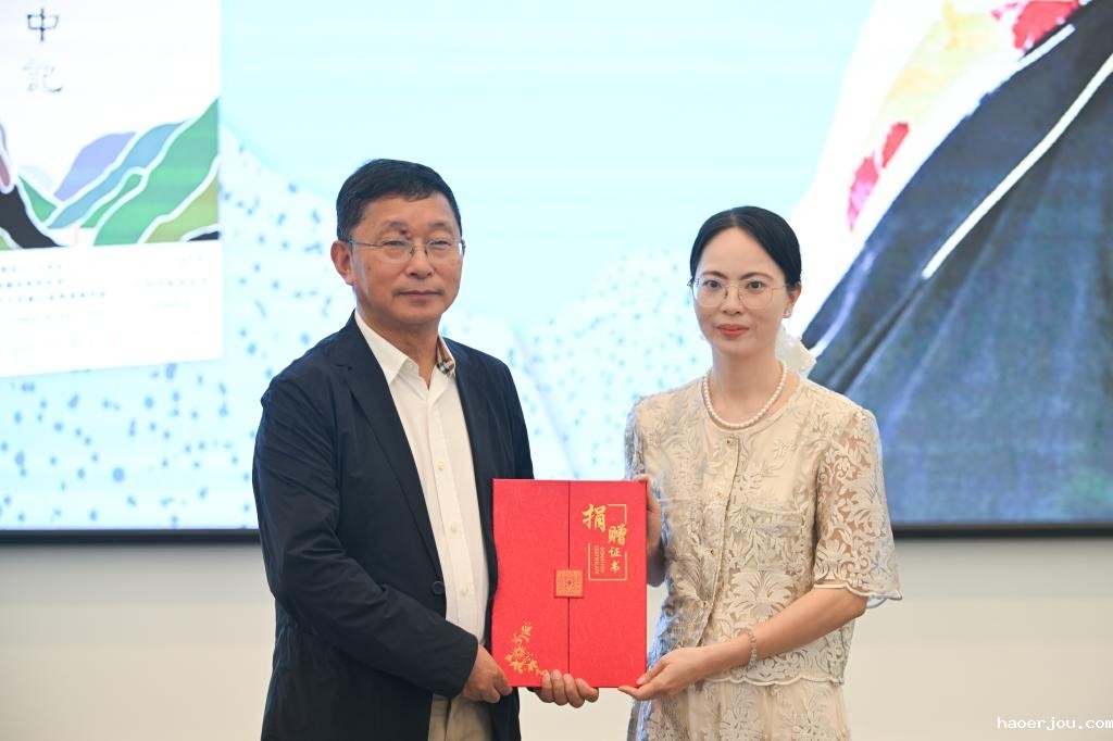 学校图书馆为阿来老师颁发了《图书馆藏证书》 黄宇翔/摄