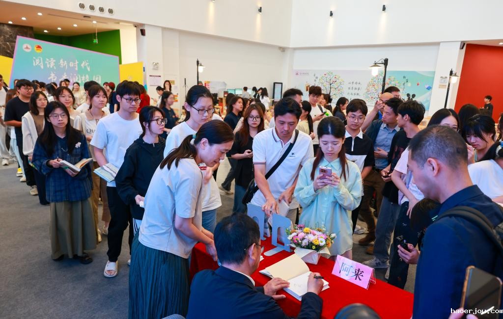 分享会结束后,阿来老师还为同学们签名赠书,给同学们留下了一份珍贵的礼物和宝贵的回忆。学校图书馆为阿来老师颁发了《图书馆藏证书》,以感谢其对我校文化建设工作的支持与贡献。