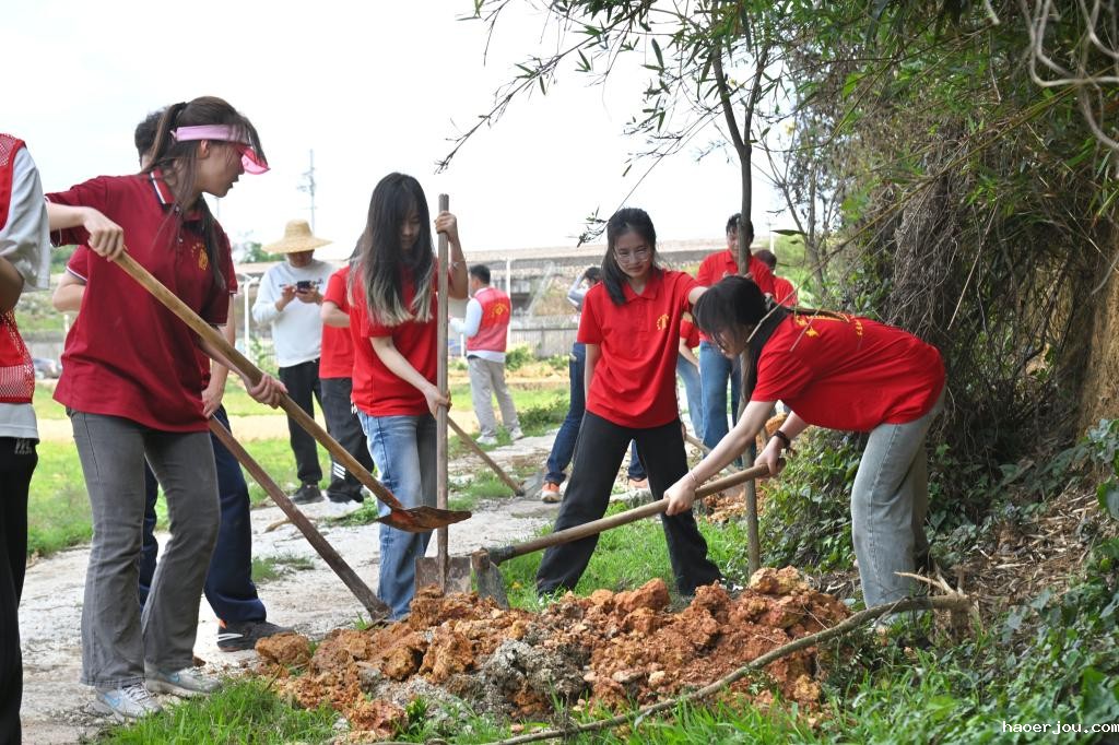 “能为绿色家园做些力所能及的事,我感到特别开心。”2022级服装设计与工程4班的蓝心怡同学表示,在短短一下午的植树活动中,她不仅学会了“三埋两踩一提苗”的劳动技能,更以实际行动践行了“绿水青山就是金山银山” 的理念,为黄桐村的乡村振兴事业注入了绿色动力。