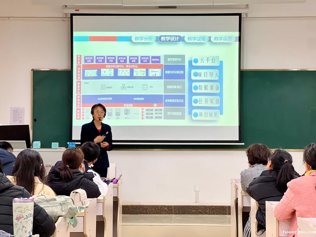 刘丽梅教授以《财务大数据分析》课程为例进行说课展示。她从教学分析、教学设计、教学过程、教学反思四个维度,系统呈现如何将行业前沿技术融入理论教学,并通过“问题链+项目制”模式激发学生高阶思维能力。