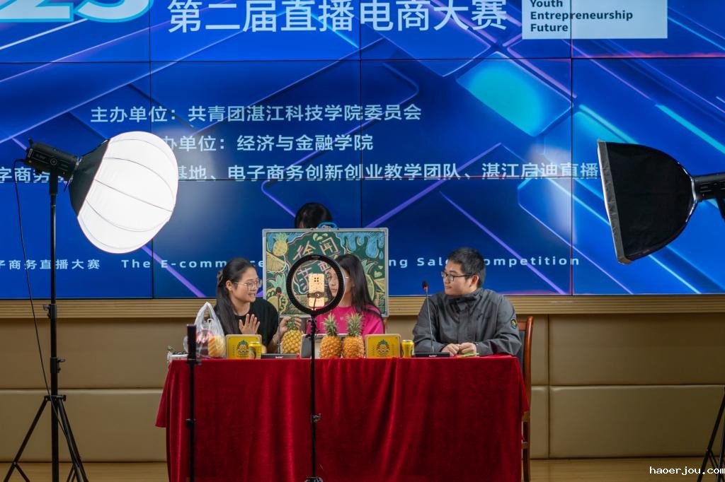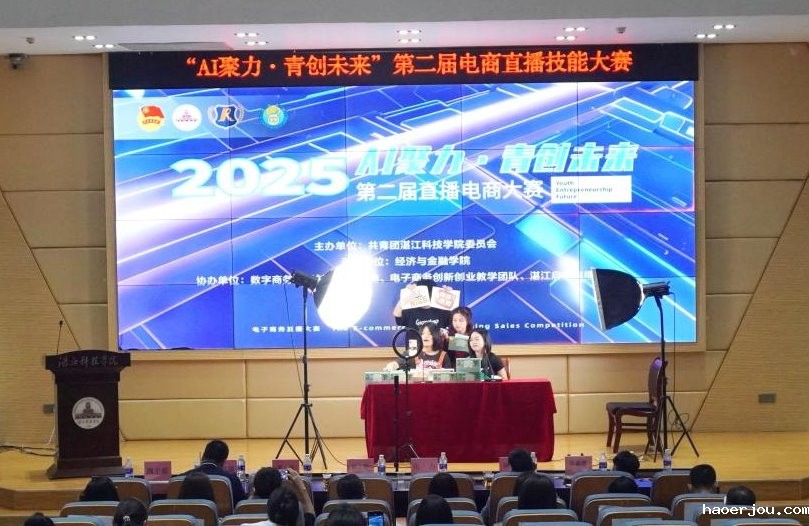 4月15日,经济与金融学院在知行楼123报告厅举办第二届AI聚力·青创未来电商直播大赛决赛。本次大赛聚焦数字经济前沿领域,通过以赛促学、以赛促创模式,全面检验新商科韦德betvictor成效。经济与金融学院院长张力,电子商务系主任霍琪老师等学科带头人,与广东始还农业科技有限公司总经理陈嵩文、湛江启迪直播基地总经理戴志聪等企业专家组成评审团。现场200余名师生代表共同观摩赛事。