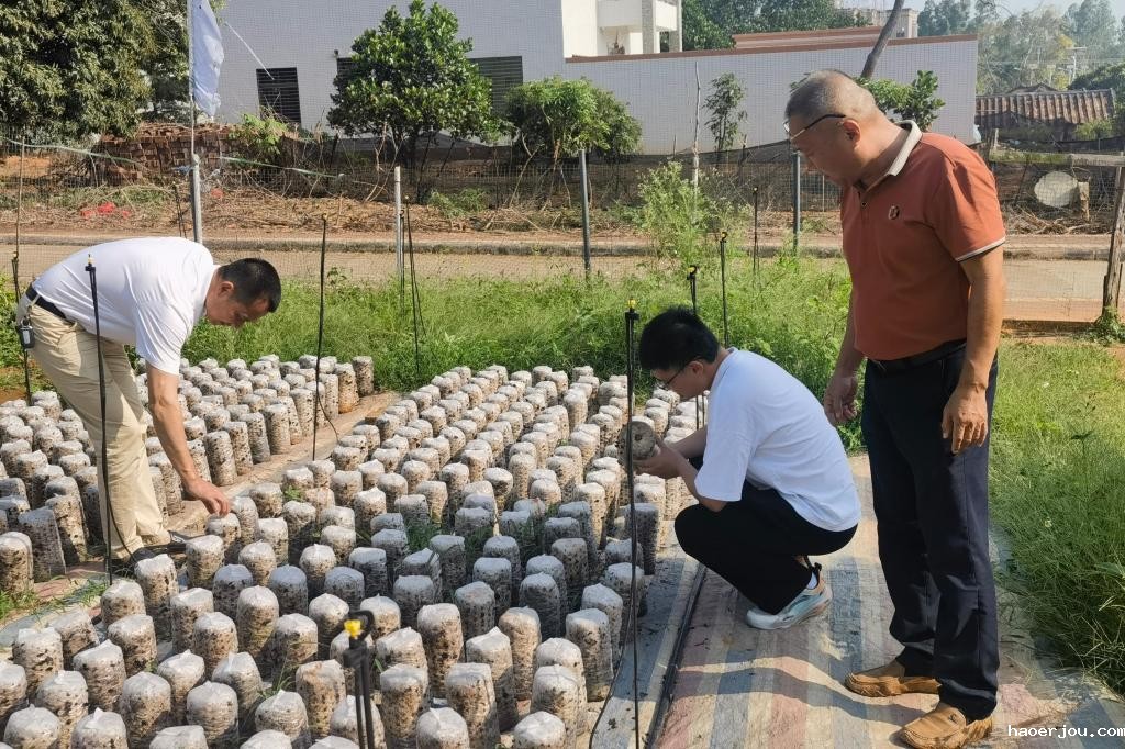 4月22日,我校农村科技特派员团队队长冯志红带领建筑工程学院实验教学中学主任杜曲、园林专业教研室骨干教师陈观秀前往湛江雷州市沈塘镇,围绕木耳产业开展全链条科技帮扶,并与驻沈塘镇“百千万”工作队队长、沈塘镇党委副书记周国红、工作队成员黄建伟、木耳种植企业负责人黄耿飚等展开座谈交流。