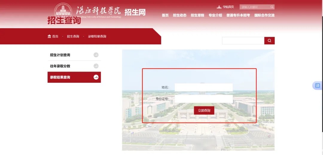 2.点击录取结果查询