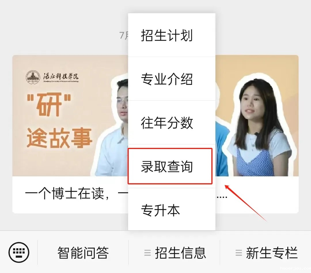 2.在菜单栏点击“招生信息”→“录取查询”